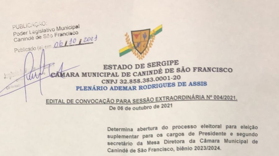 Edital de Convocação nº 004/2021 – Determina abertura do processo eleitoral para eleição suplementar para os cargos de Presidente de Secretário de Mesa Diretora