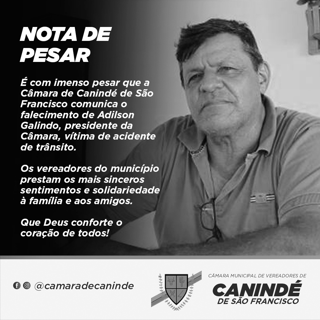 Adilson Galindo, Presidente da Câmara Municipal de Canindé de São Francisco morreu vítima de acidente de trânsito quando se deslocava em viagem ao Estado do Maranhão. O acidente ocorreu no Estado do Piauí.
