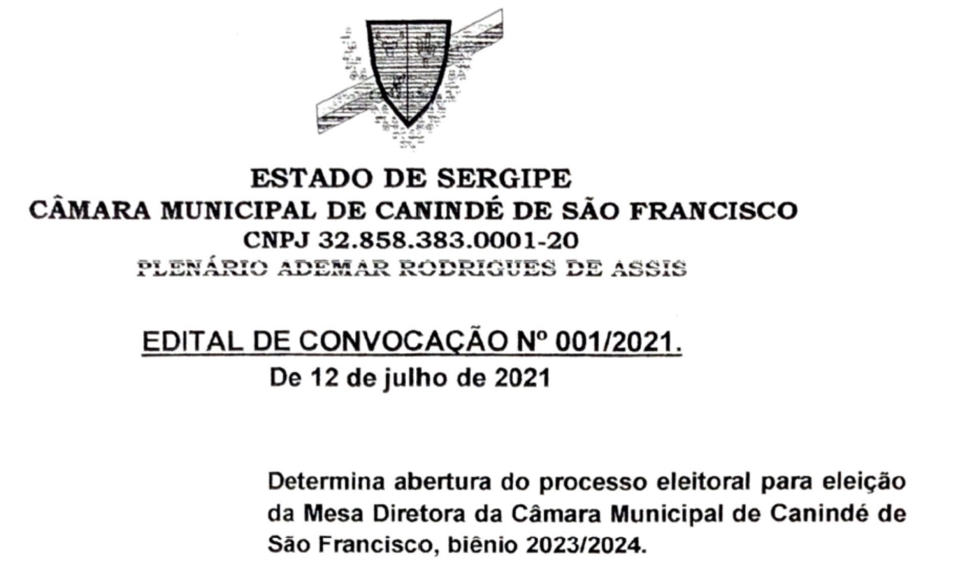 Edital de Convocação nº 004/2021 – Determina abertura do processo eleitoral para eleição suplementar para os cargos de Presidente de Secretário de Mesa Diretora
